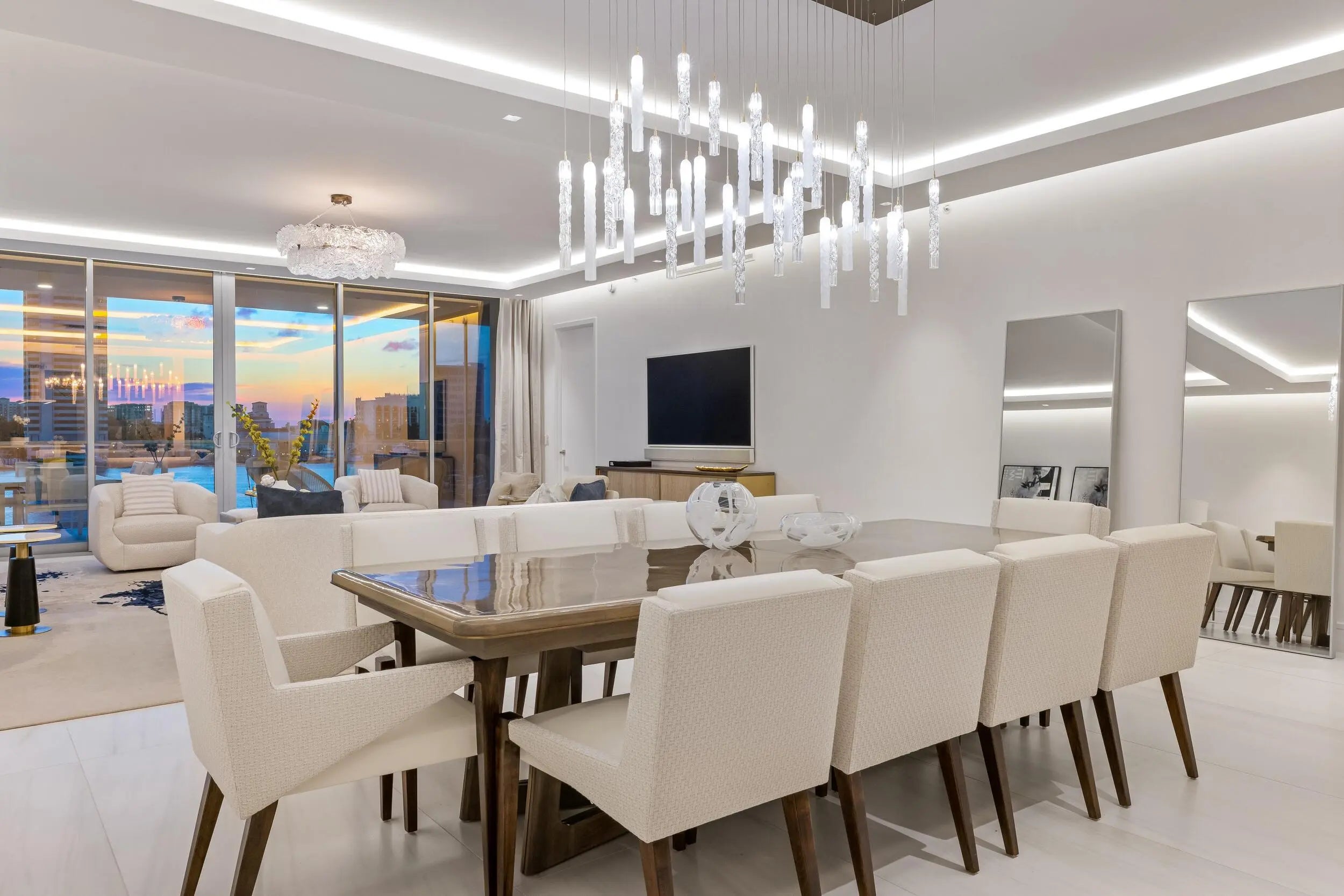 Penthouse 2 at Boca Beach Residences is a rare, fully furnished waterfront offering with sweeping views of Lake Boca and the Atlantic Ocean from every guest suite. This 4-bedroom + den, 3.5-bath residence features a spacious flow-through layout with over 600 square feet of private outdoor space--including two terraces, one with a summer kitchen overlooking the Intracoastal. A private boat slip is included, offering direct access to South Florida's premier waterways. Every detail of this designer-finished residence reflects the essence of elevated coastal living. Wide-plank white oak flooring, floor-to-ceiling glass, custom motorized blinds, outfitted closets, and curated wall coverings create a sophisticated and harmonious interior.